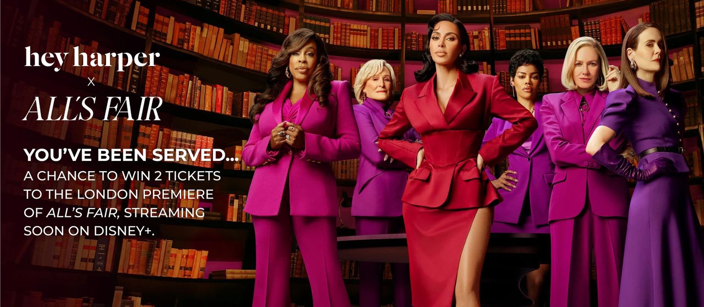 We’ve teamed up with Disney+ to offer 5 pairs of tickets to the exclusive London premiere of All’s Fair, the new legal drama starring Kim Kardashian, Naomi Watts, and Niecy Betts-Nash. Streaming soon on Disney+. Sign up below to be entered into the giveaway. 5 winners will be randomly selected and contacted via the email provided below.